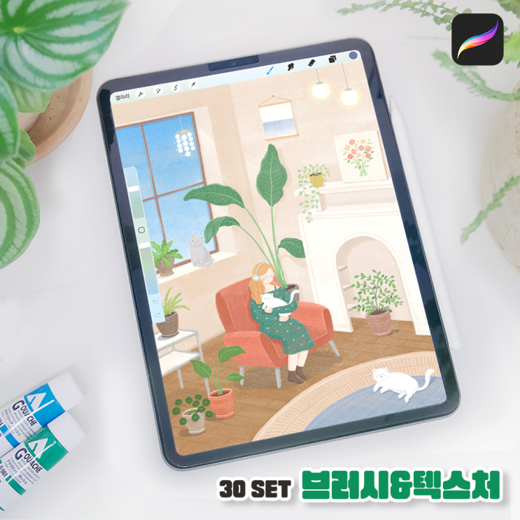 텀블벅 펀딩 프로크리에이트 브러시&텍스처 30종 깊고 부드러운 아이패드 드로잉