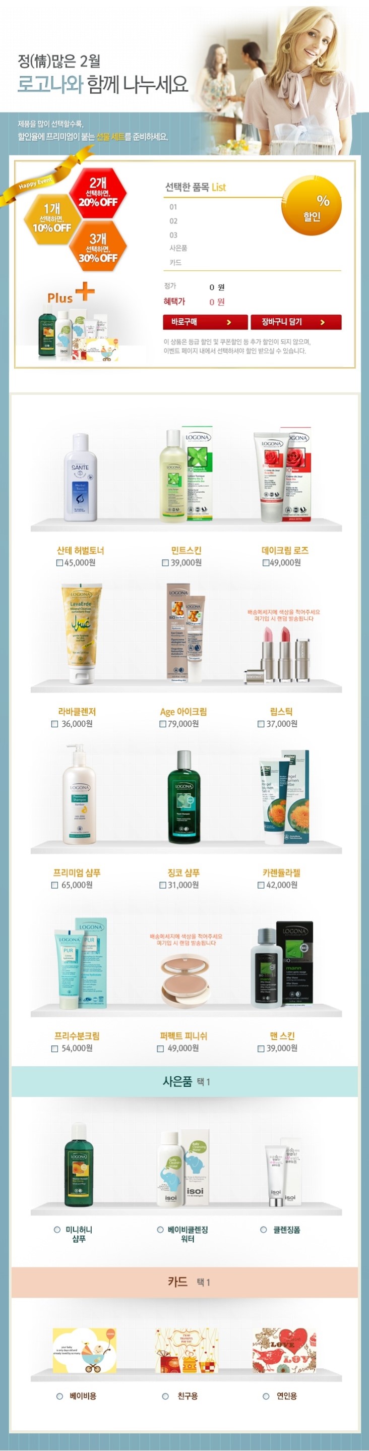 로고나에서 설 선물 이벤트를 마련했어요... 제품을 많이 선택할수록 할인율이 높아지는 설 선물세...
