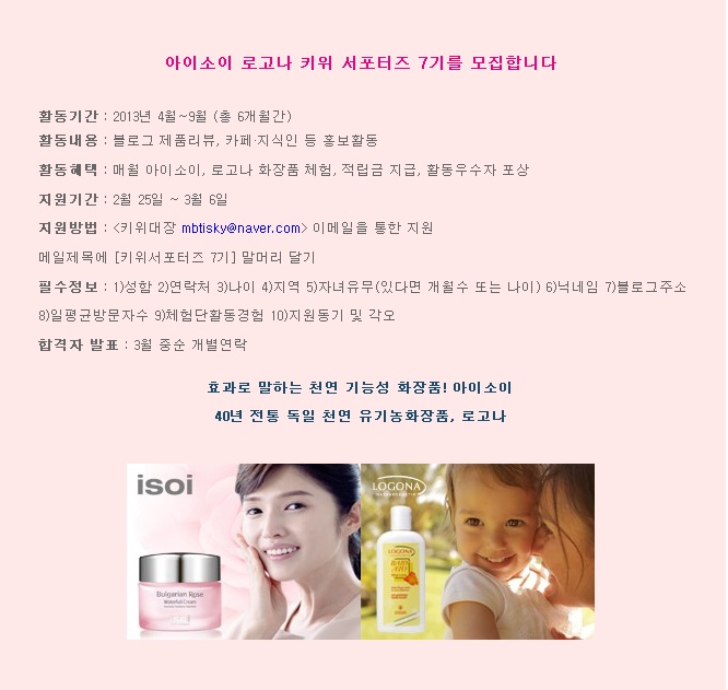아이소이 로고나 제품을 체험할 수 있는 서포터즈를 모집합니다... 6개월동안 했는데... 다시 지원...