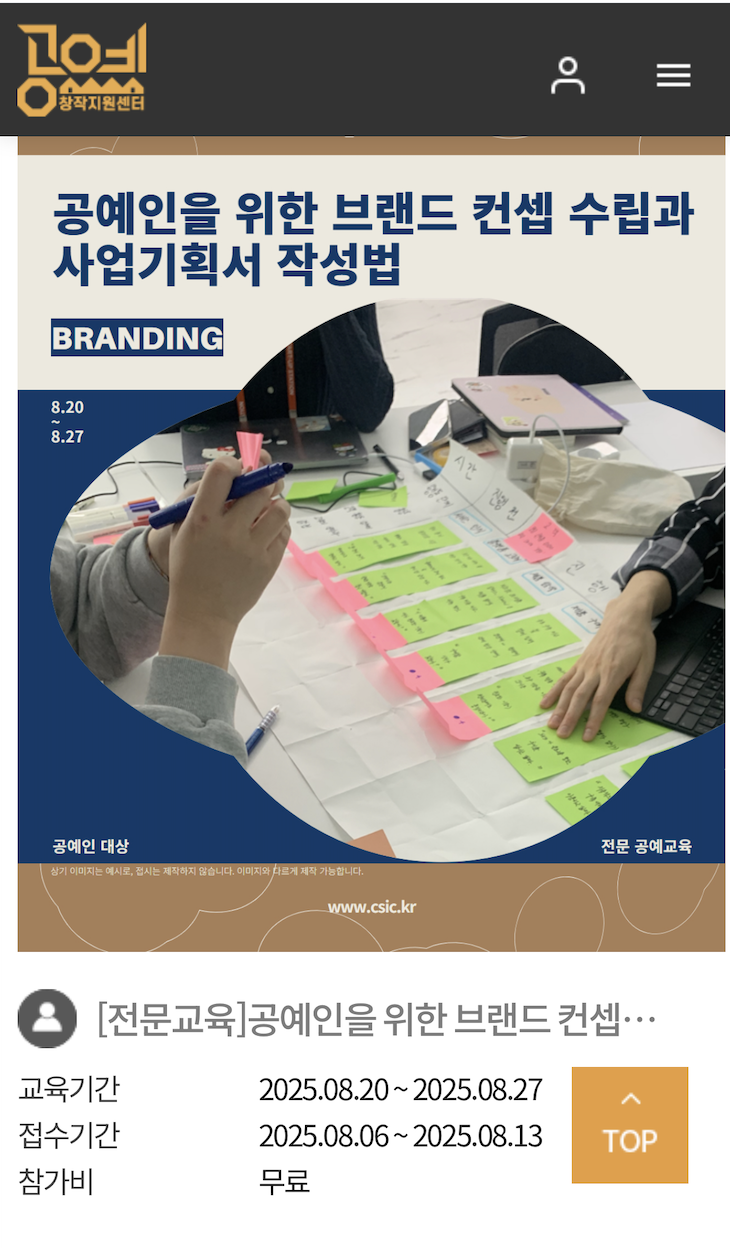 8월 공예인을 위한 브랜드컨셉 수립 워크숍 진행합니다~^^ 2025년 새롭게 정리한 비즈니스 컨셉노트툴 기반...