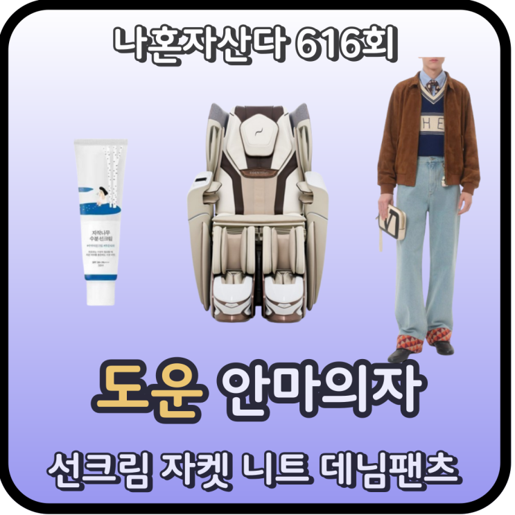 나혼산 도운 안마의자 선크림 옷 스웨이드 자켓 니트 스웨터 데님팬츠 청바지 패션 데이식스 나혼자산다 616회