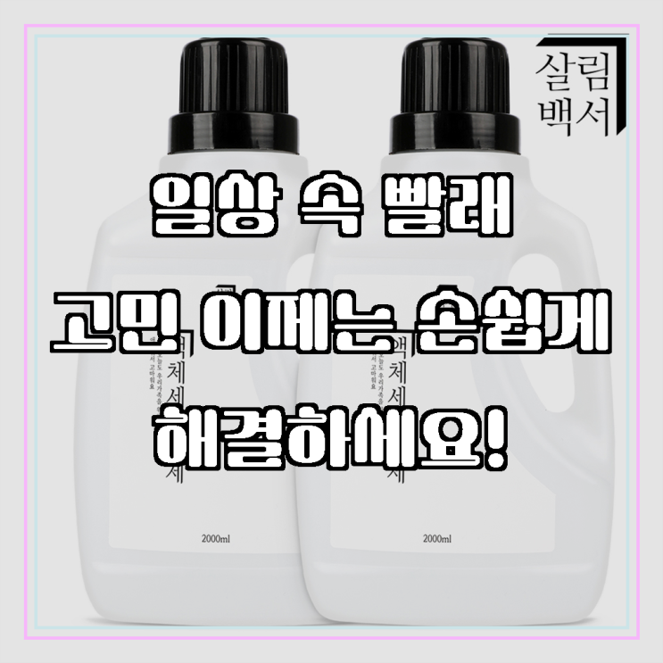세탁의 혁신, 11 살림백서 세탁세제 2L 액체세제 천연 유래 98% 중성 드럼 세탁기 일반 대용량으로 깔끔함...