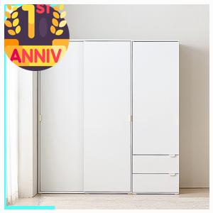 필수 바스포르 레이나 1800 슬라이딩 옷장 세트 1200 옷장 (행거형)+600 서랍옷장 한정템