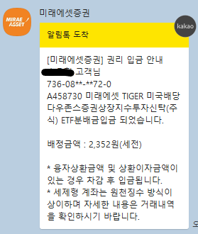 24년 7월 TIGER 미국배당다우존스 배당금이 입금되었다. 적립식 매수를 지향하는데 이번달에는 깜빡하...