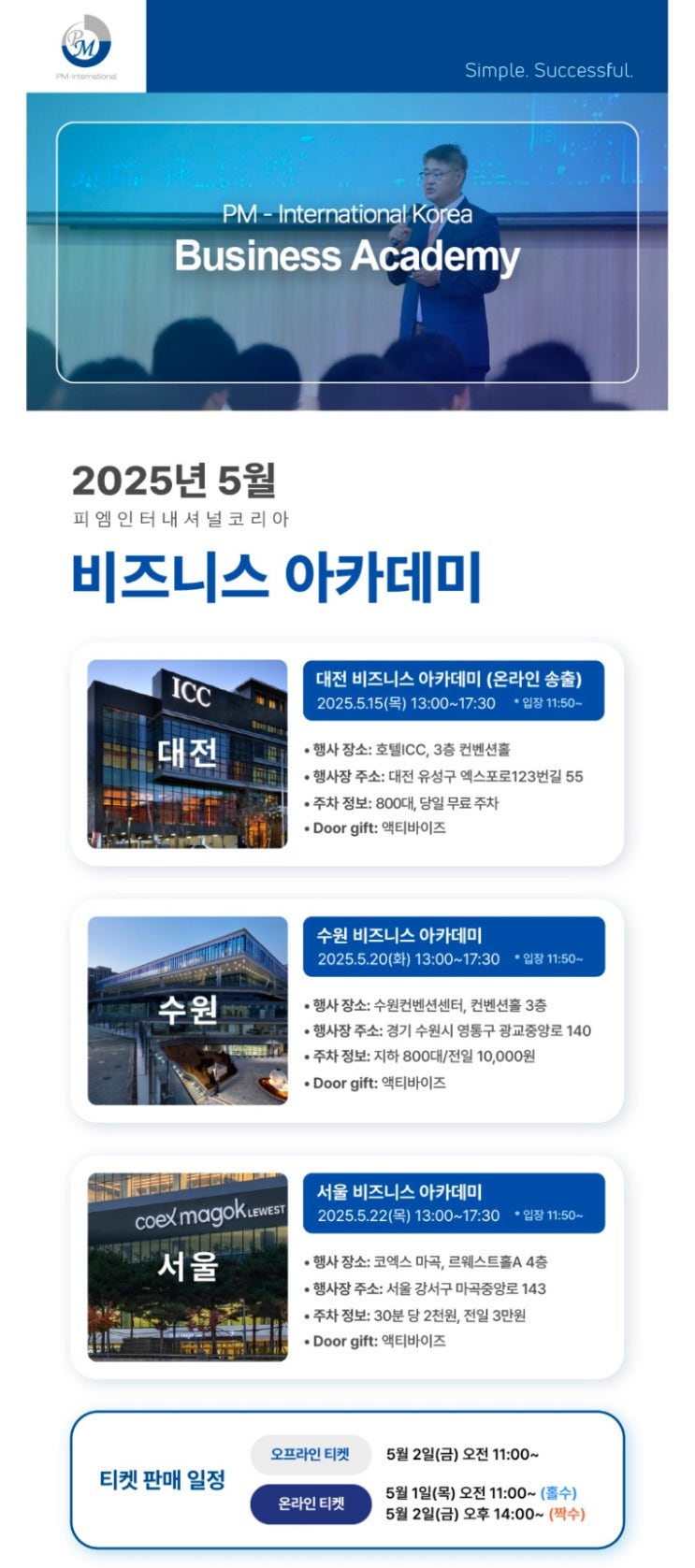 오프라인 온라인 티켓 구매 안내 안녕하세요^^ 5월 피엠인터내셔널 비즈니스 아카데미 개최 관련해서 오프...