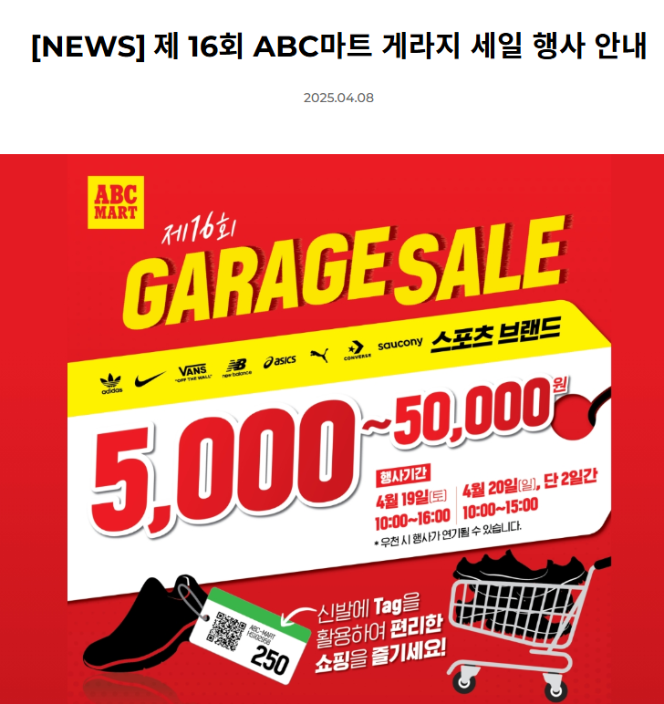 제16회 ABC마트 게라지 세일 (4.19~20일) #ABC마트#게라지세일#창고세일#운동화세일#초특가구매#진열...