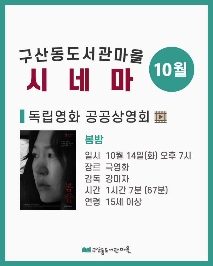 인디서울과 함께하는 독립영화 공공상영회 10월 첫 번째 상영작은 <봄밤>입니다. 구산동도서관마을 ...