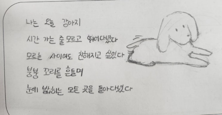 이번주는 비유 수업을 드디어 마무리하고 상징 수업을 들어갔다. 비유 수업을 마무리하며 시 창작 연습을 ...