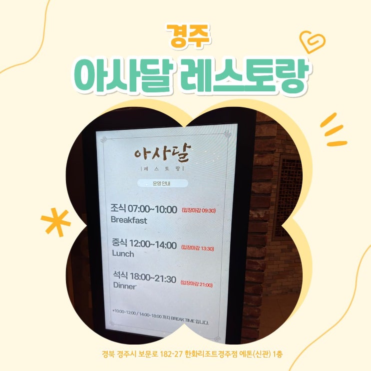 [경주] 한화리조트 아사달 레스토랑 조식뷔페·석식 후기