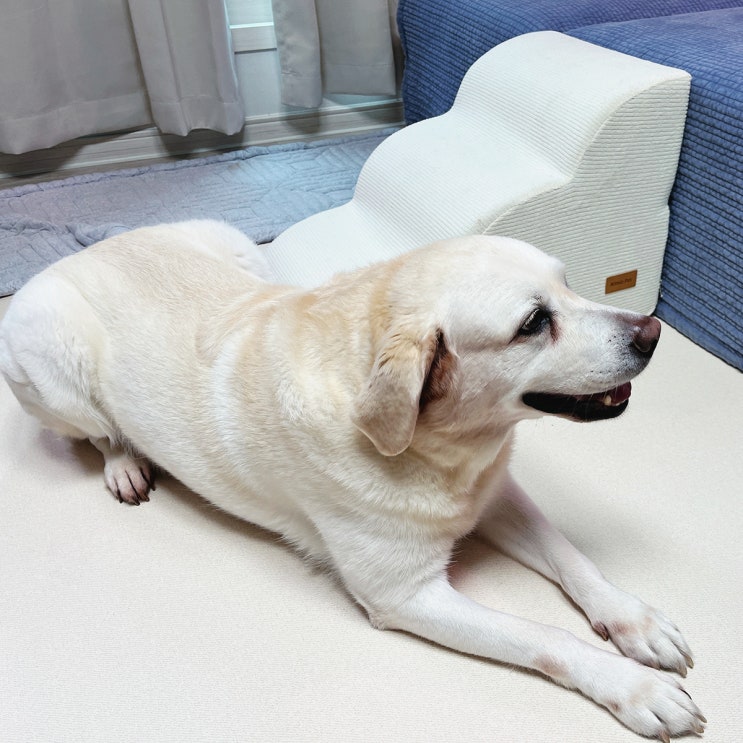예쁘고 편안한 강아지 계단 추천, 올미오펫 구름패브릭 곡선계단 후기