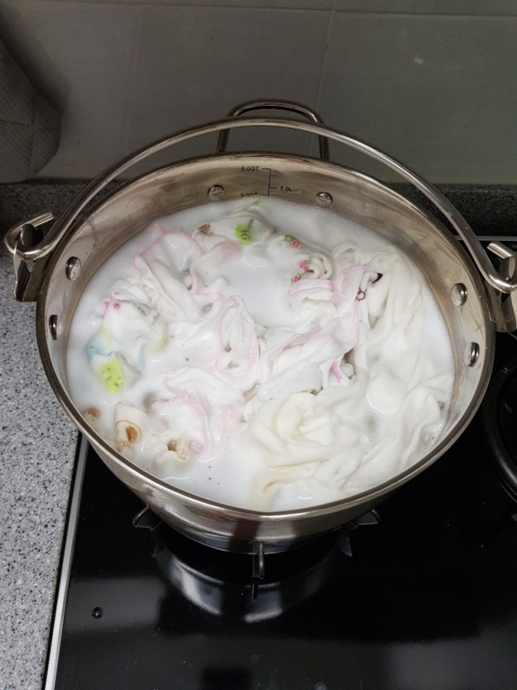 어제는 정민이 가제손수건과 분유 게워내서 얼룩진옷들을 과탄산소다와 구연산 넣고 폭폭삶았다,,,, 하고나...