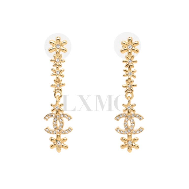 샤넬의 세련된 도금이 눈에 띄는 골드 귀걸이 입니다 아주 진한 골드 컬러 플라워 장식과 CC 로고입니다 ...