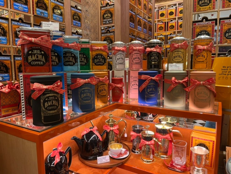 언뜻 보면 TWG 느낌인데, BACHA 커피에요~ 바샤커피(또는 바차커피)라고 읽습니다^^ TWG도 싱가...