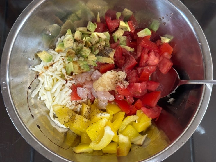 공복몸무게 53 럭키비키 아침 샐러드 오이 넣으려고 했는데 한개에 1700원ㅋ 파프리카로 대체 ㅋ 방토도 미...