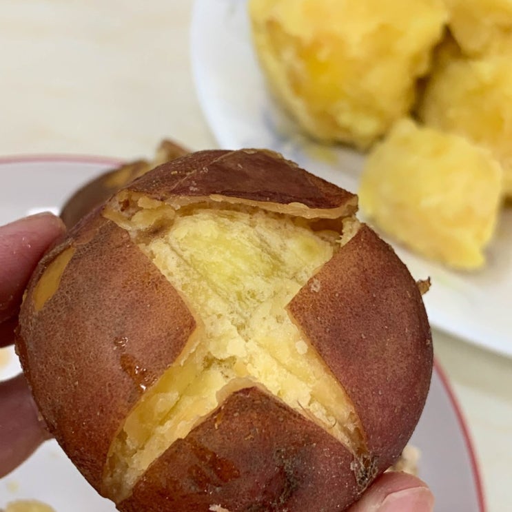 빨간 속살 안에 카스테라 식감의 포근함을 가진 카스테라 감자 홍감자 아시나요? 인위적으로 냄비를 흔들거...