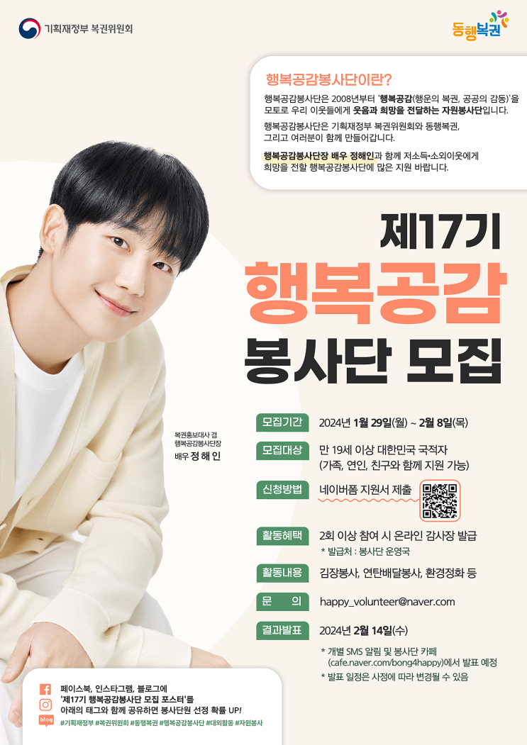 제17기 행복공감 봉사단 모집
