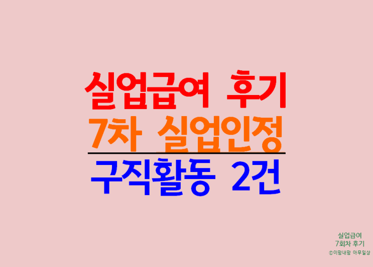 실업급여 7회차 실업인정 후기이다. 벌써 7회차라니.. 6차부터는 구직활동으로만 실업인정이 되어서 7회차...