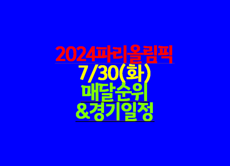 [제33회 2024파리올림픽] 5일차 7/30(화) 우리나라 매달 순위 및 경기일정