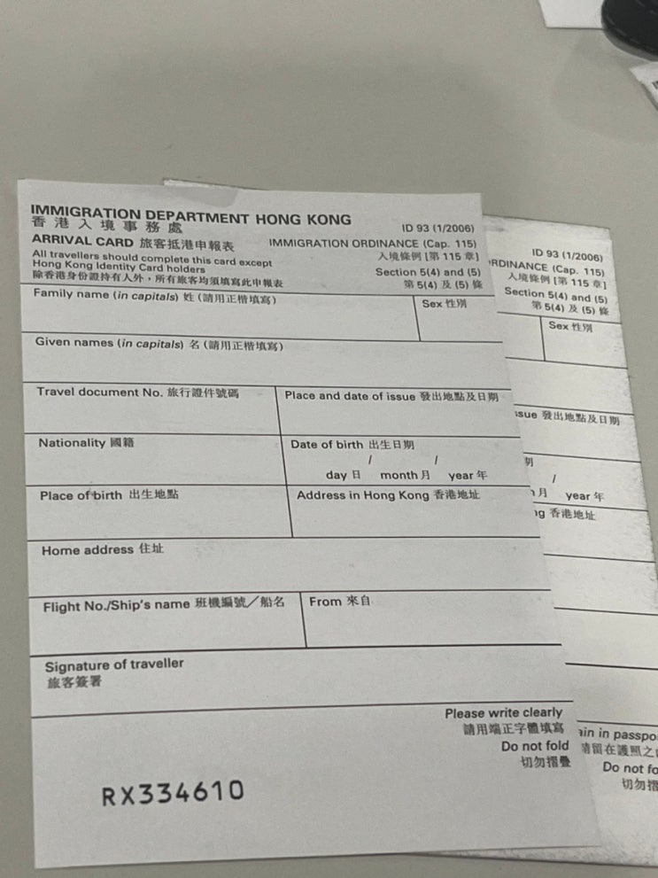 홍콩국제공항입국하기