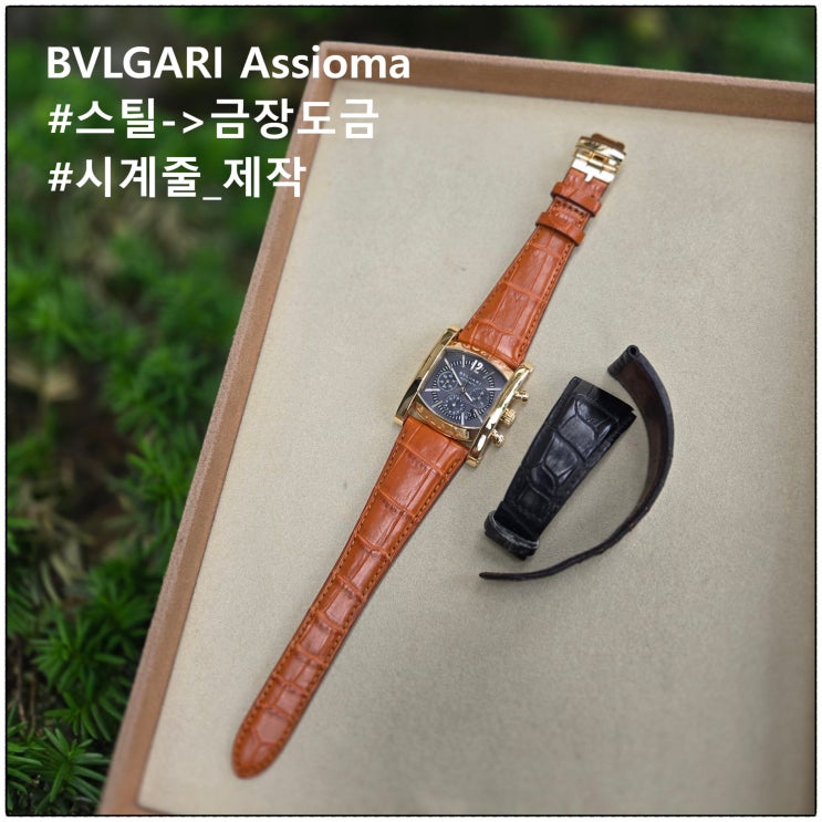 18K 화이트골드 커스텀 로렉스 빈티지시계 - 오버홀 태엽교체 다크올리브그린 악어시계줄 교체 수리