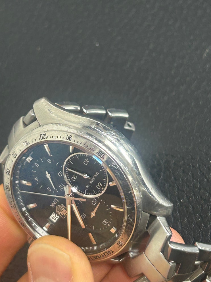 태그호이어 시계 폴리싱을 접수했습니다 대략 7년 정도 사용하셨다고 합니다 시계 테두리 부분에 상당히 많...