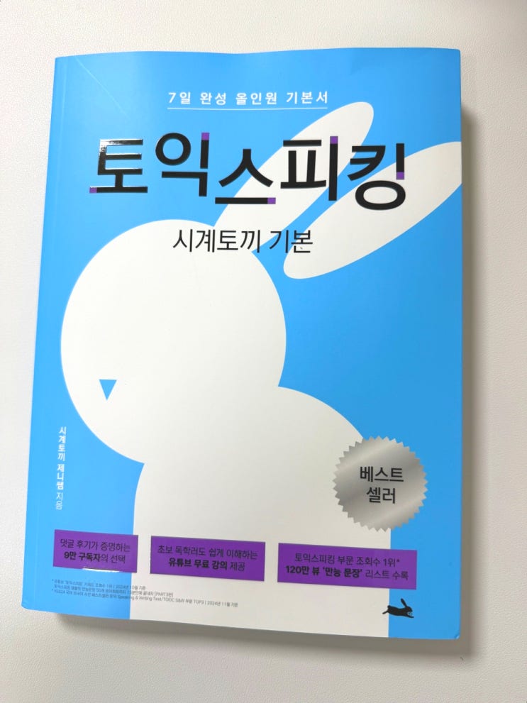 출판사 시계토끼에서 상품 협찬을 받아 작성한 실제 후기입니다 시계토끼 기본 토익스피킹 7일 완성 올인원...