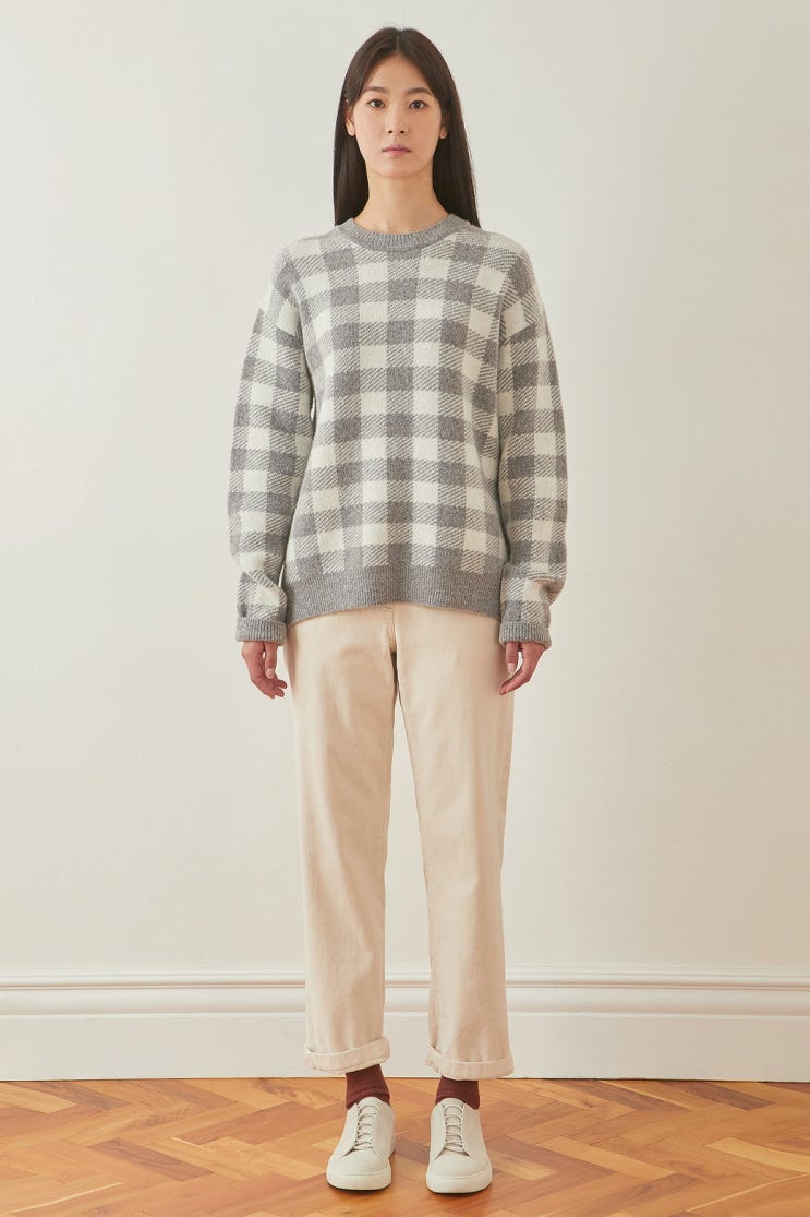 [epigram여성] 빅 체크 니트(EFWAW20511GYX) 그레이