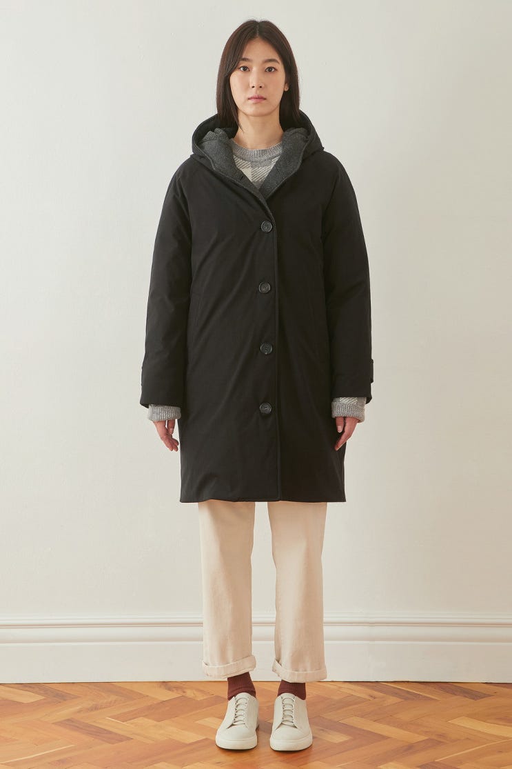 [epigram] 심플 롱 구스다운 점퍼 ERUCW20601NYX 겉감: 폴리에스터 84% 면 16% 배색,안감,충전재2:...