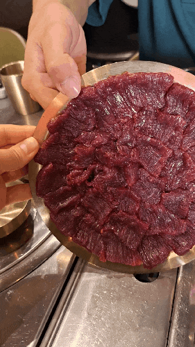 구미 뭉티기 맛집! 접시를 들어도 안떨어져요~ 힘줄 하나 걸리는거 없이 부드럽고 쫀쫀하다는 #구미생고기...