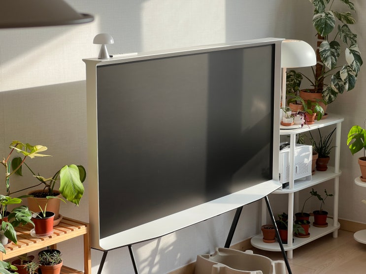 동생네 집에서 처음 접해본 삼성 쉐리프? 셰리프?TV 벽 타공을 하지 않아도 스탠딩 형태로 사용 가능하고...