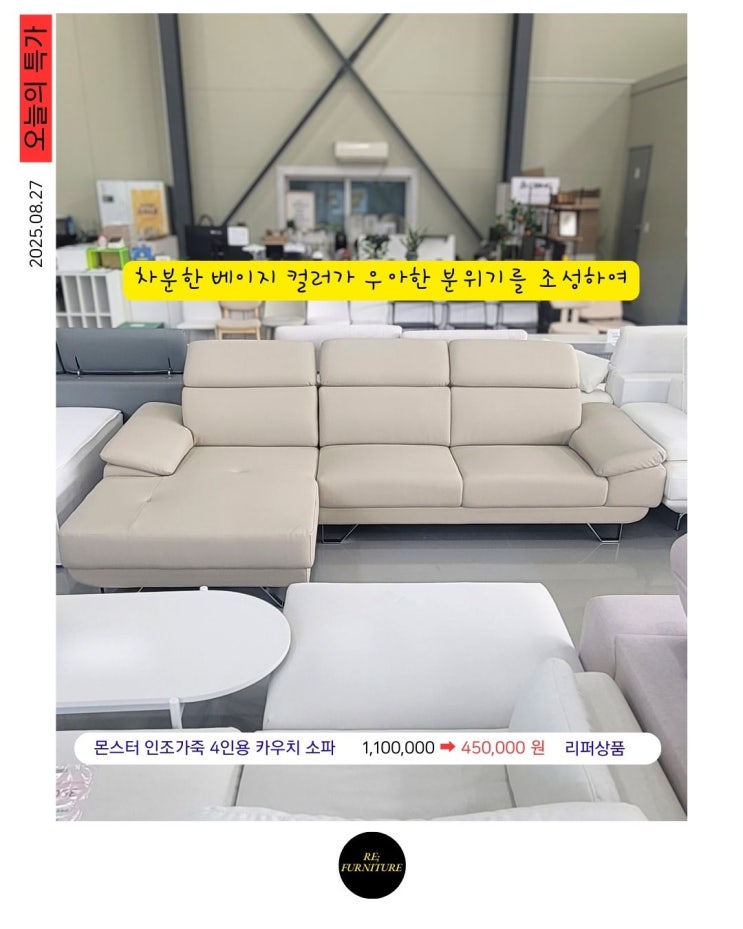리퍼니처 오늘의 특가 _ 몬스터 인조가죽 4인용 카우치 소파