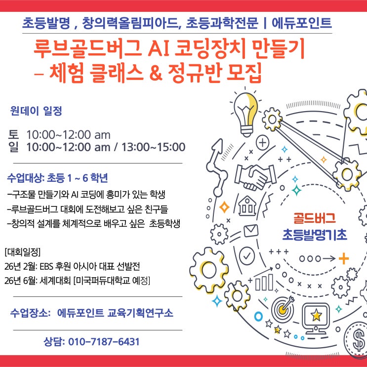 루브골드버그 체험수업 및 정규과정 개강 _초등발명/창의력올림피아드전문 /초등과학에듀포인트