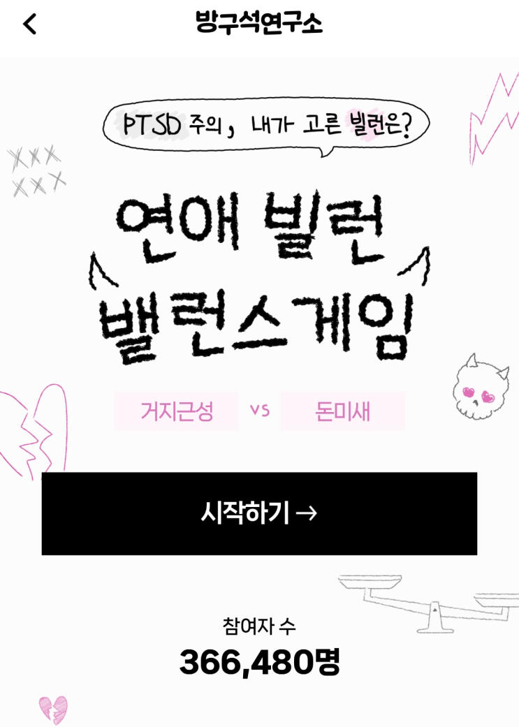 방구석 연구소 연애 빌런 밸런스게임 테스트로 연애 성향 알아보기 링크 포함!