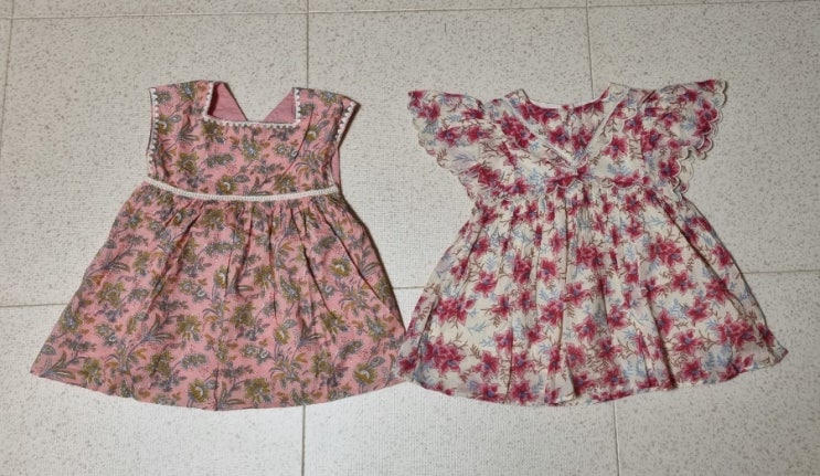 왼쪽 tapalpa드레스 3y, 오른쪽 siloe드레스 4y 한사이즈 차이나는데 기장과 품이 거의 비슷하다.