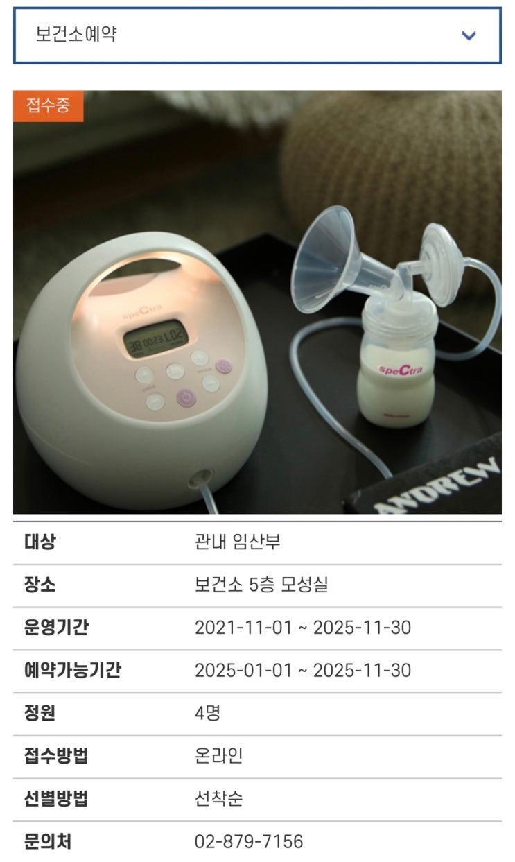 관악구 보건소 유축기대여 (스펙트라S2+ 유축기)