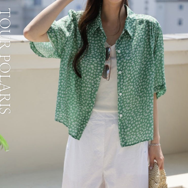 루즈핏 레이온 쿨나염셔츠블라우스 그린 네이비 잔꽃패턴 통통한 뱃살 체형커버 오버핏 카라플라워블라우스 데일리룩 오피스룩 여행룩 코디 국내제작