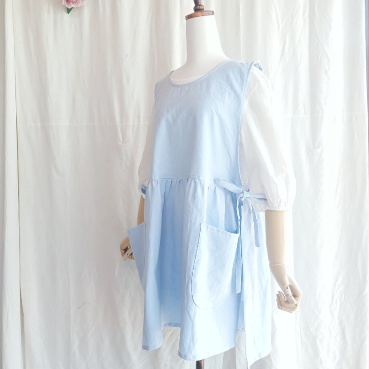 ♡빅사이즈앞치마♡ 시원한 블루스카이톤의 린넨 앞치마 길이는 힙을 덮을 정도의 짧은길이감으로 가볍게 ...