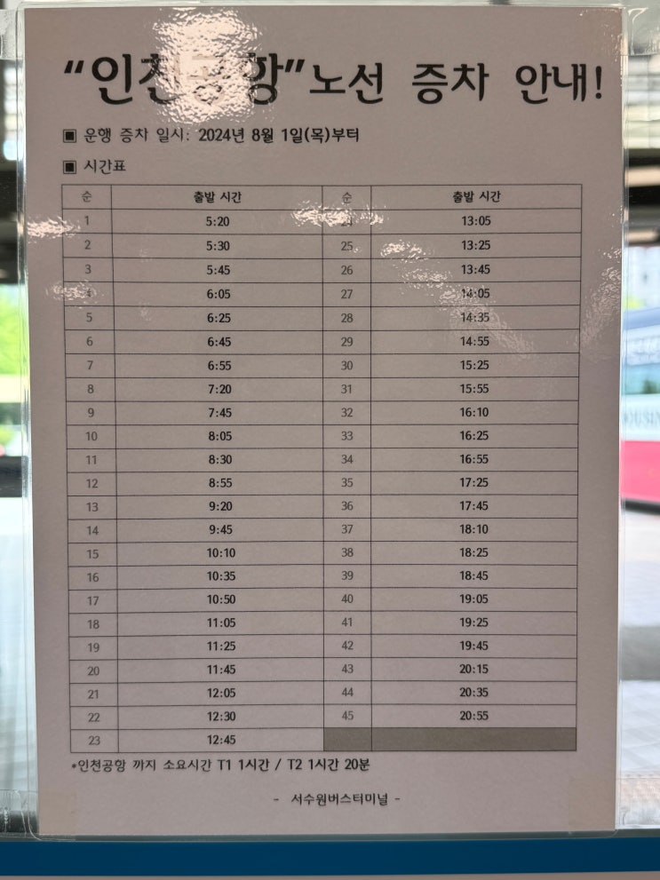 서수원버스터미널 인천공항 시간표가 업데이트가 돼서 알려드려요. 이전과 비교하면 조금 증차가 됐는데, ...