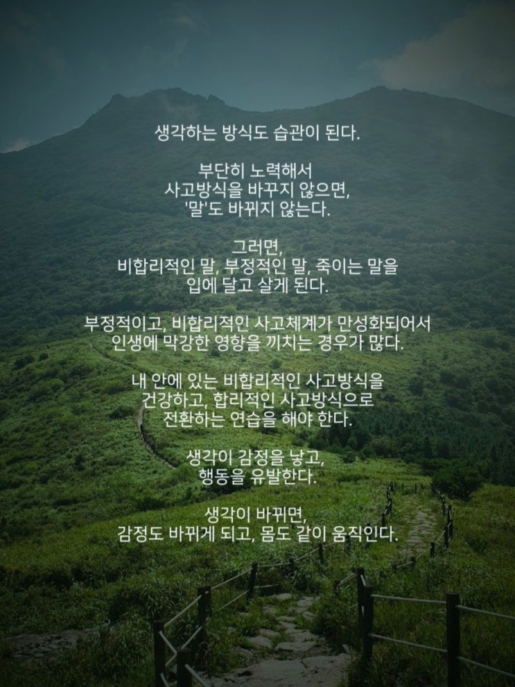 생각하는 방식도 습관이 된다. 부단히 노력해서 사고방식을 바꾸지 않으면, '말'도 바뀌지 않는...