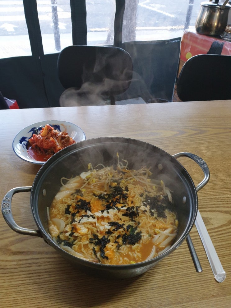 콩나물 떡라면 가게 청파로 대로변 삼거리에 위치한 작은 가게 제대로 된 문도 없는 요상한 가게 간판은 라...