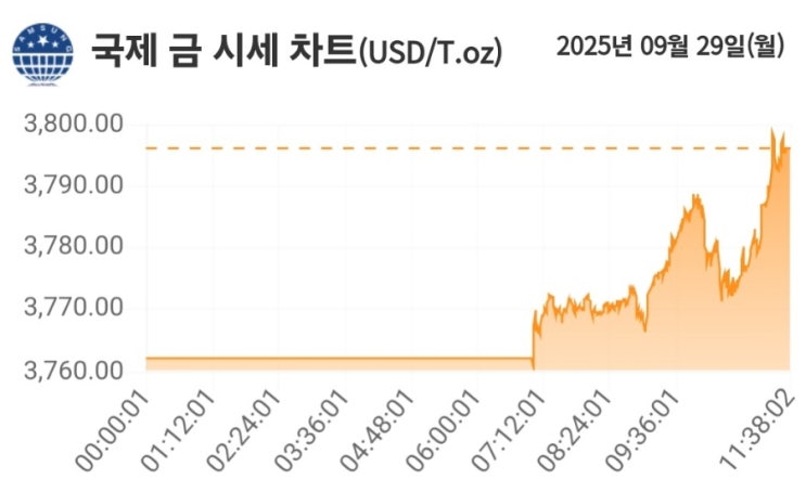 [2025년][9월30일][국내금값급등][최고가경신] 국제금값, 미 연준 완화기대와 안전자산 수요에 3800달러 돌파~