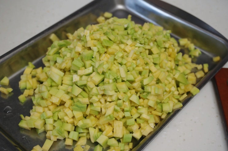 속이 잘 익은 애호박~! 애호박을 다지고 있으니, 첫째가 어릴때, 볶음밥 재료로 채소를 다질때가 생각나더...