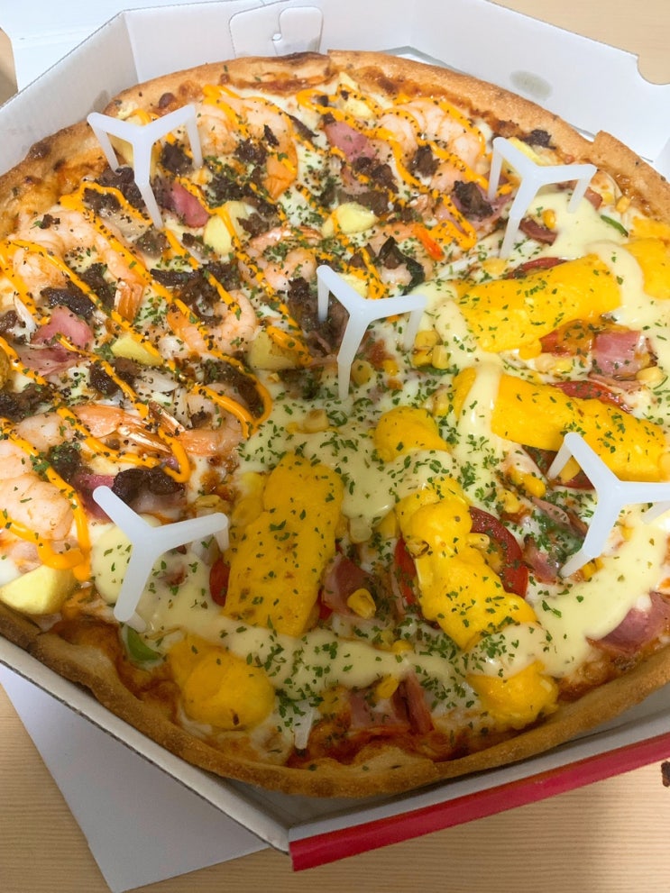 [신림] 청년피자 반반피자(멕시칸맥쉬림프/에그콘피자) 주문 후기
