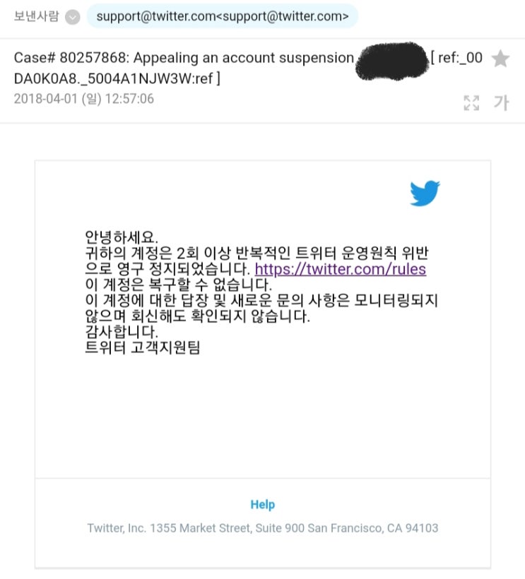 트위터 해킹당한 계정 삭제해달랬더니 이런 답변이...