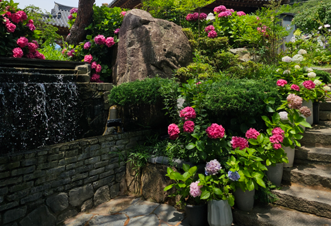고즈넉한 한옥 마당에서 마주한 수국 가득 여름 풍경