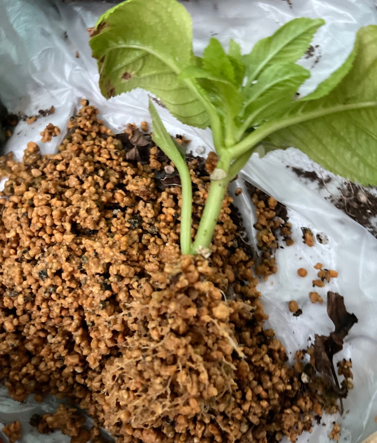 올 7월에 녹소토 삽목한 수국, 뿌리가 잘 나왔네요.