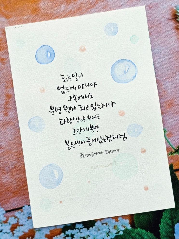 꽃을 건네듯 나에게 말을 건네다#꽃을건네듯나에게말을건네다 #수채캘리 #붓펜캘리 #너에게 #들려주고싶은말 #빛이나글씨 #빛이나캘리