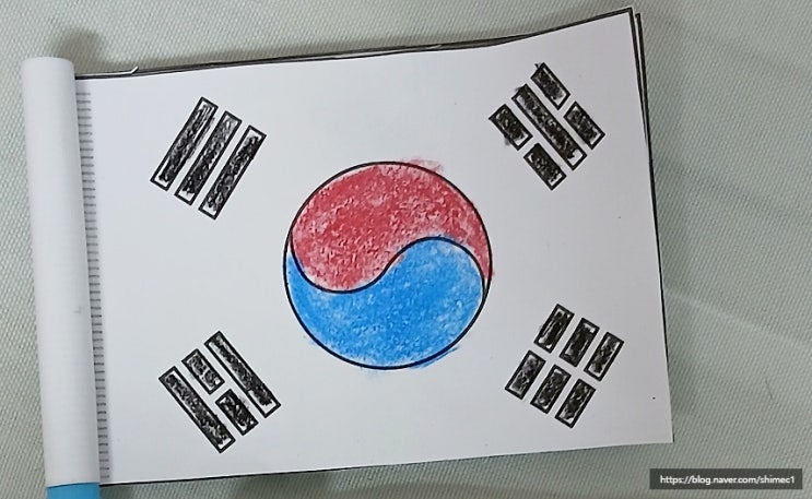 어머니가 데이케어센터에서 색칠해 가져오신 태극기. 수십 년 제국주의 식민지 피지배 민족이, 온 강산이 ...
