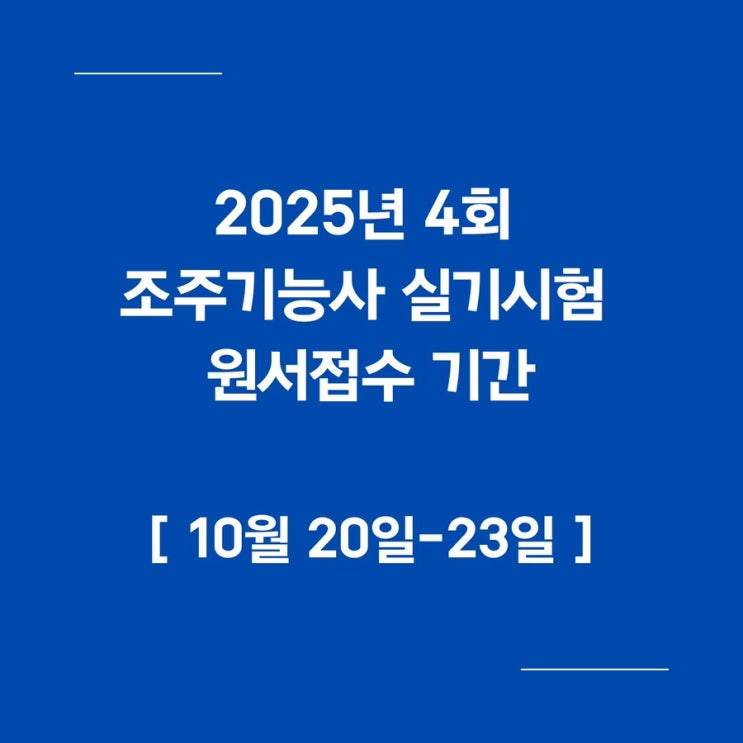 2025년 4회 조주기능사 실기시험 원서접수 기간 : 10월 20일(월)-23일(목)