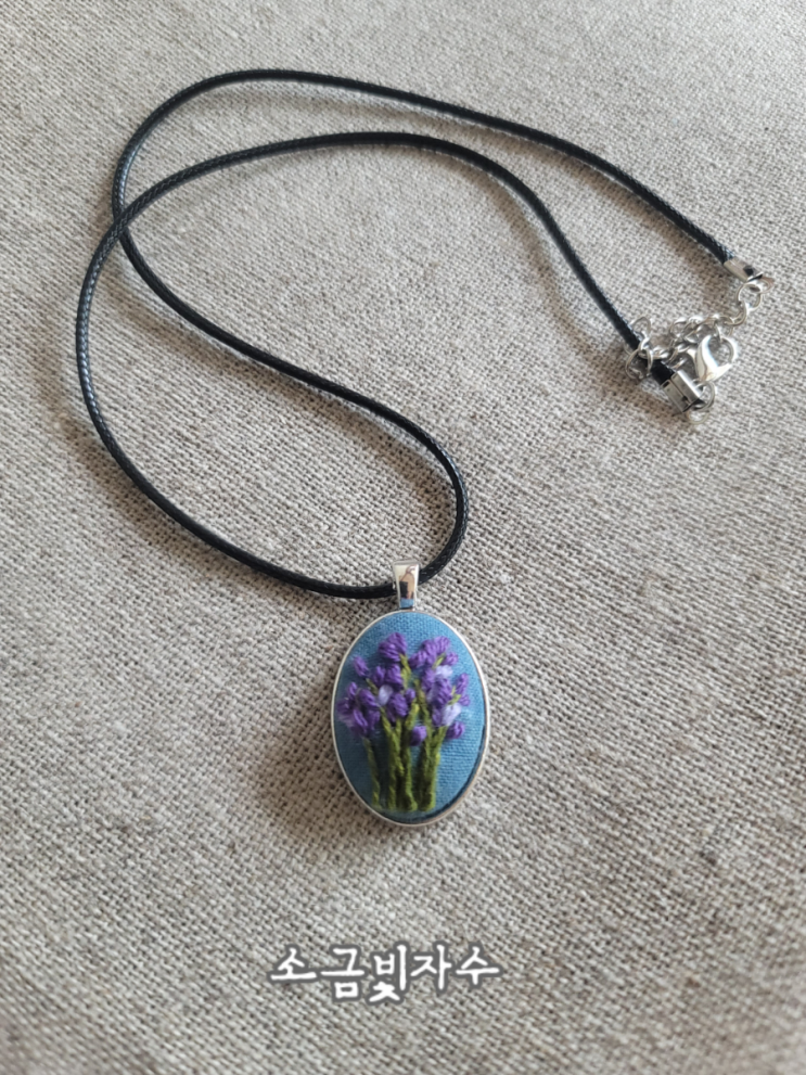 보랏빛 라벤다자수 조그맣게 수놓아 만든 자수 목걸이 Copyright ⓒ 소금빛, 염경숙 all rightes reserved...